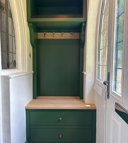 Hallway storage includes fitted cupboards, benches, coat storage and shoe units designed specifically for your entrance space. It helps manage everyday clutter like coats, bags and shoes.